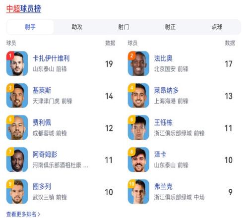 就这样的成绩,还是主要靠外援踢出来的,射手榜前十里面只有一名中国球员。